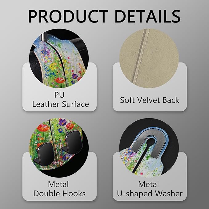 Blusabaca 2PCS Car Seat Back Storage Headrest Hooks, Floral Spring Purse Holder Bags Hanger, PU Leather Double Metal Hook for Backseat Organizer, Women Car Accessories Organization