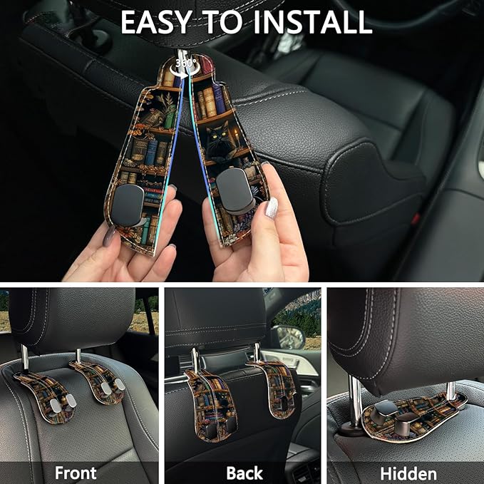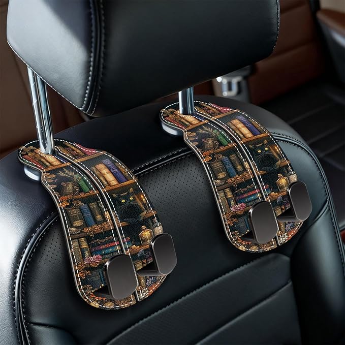 - Practical and Unique Gift: The car purse holders feature a bookshelf and black cat pattern, making them a delightful car decoration; They make a practical gift for friends, family or colleagues on occasions such as Christmas, Thanksgiving, birthdays or Valentine's Day; Surprise your loved ones with a unique and functional car seat accessory for their vehicles